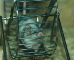Meine Damen lieben ihre Laufräder. Hier können sie ihren enormen Bewegungstrieb vollkommen ausleben. Manchmal stehen sie Schlange, wenn halt bei 3 - 4 Mäusen im Laufrad einfach kein Platz mehr ist für Nummer 5 + 6 ist.