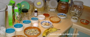 Wir haben daher Wassernäpfe. Diese werden einmal am Tag mit frischem Wasser gefüllt. Wenn unsere Damen natürlich den Wassernapf über Nacht mit Streu zugeschaufelt haben, gibt es natürlich auch schon mal 2 - 3 mal am Tag frisches Wasser.